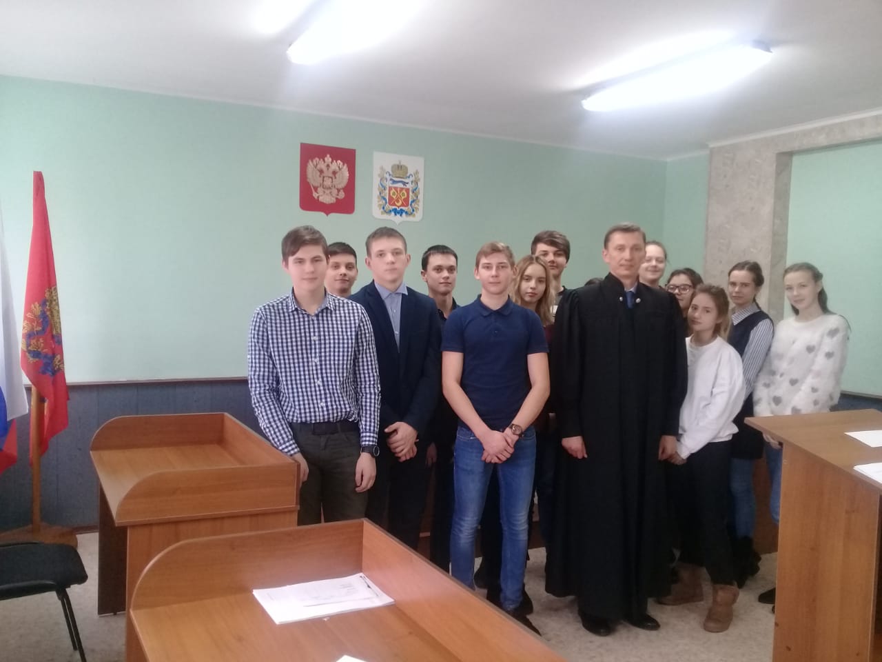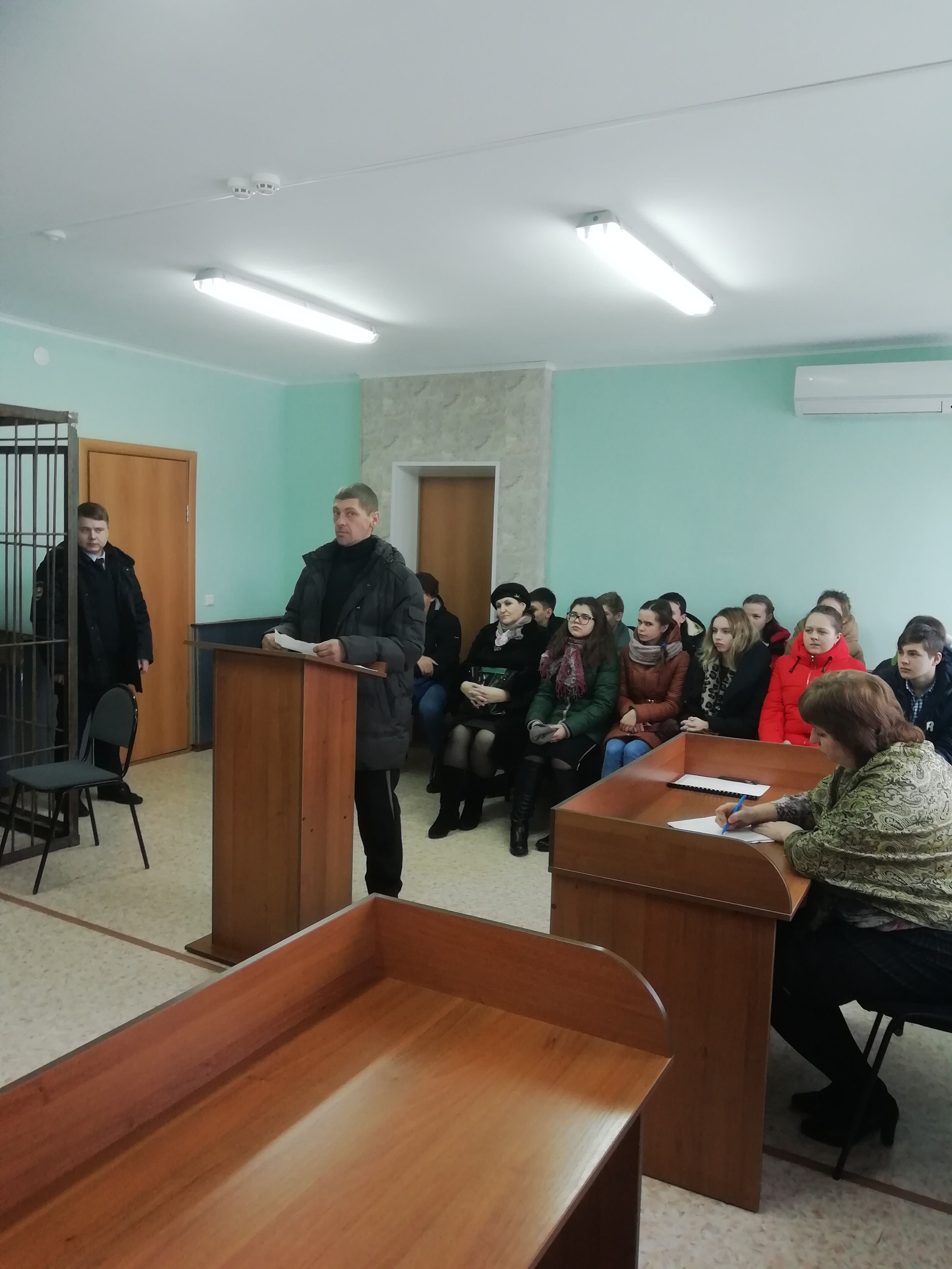 Ребят встретил мировой судья Делев Д.С. Школьникам было рассказано о судопроизводстве, о правилах поведения в суде, структуре судебной системы. Мировой судья рассказал о своих полномочиях, о том, какие категории дел в настоящее время рассматривает мировой судья по гражданским, уголовным и административным делам. Основной темой состоявшейся встречи была тема о правах несовершеннолетних и их ответственности перед законом. Мировой судья рассказал, за какие правонарушения и в каком возрасте, какое грозит наказание для несовершеннолетних. В ходе беседы ребята задавали волнующие их вопросы.